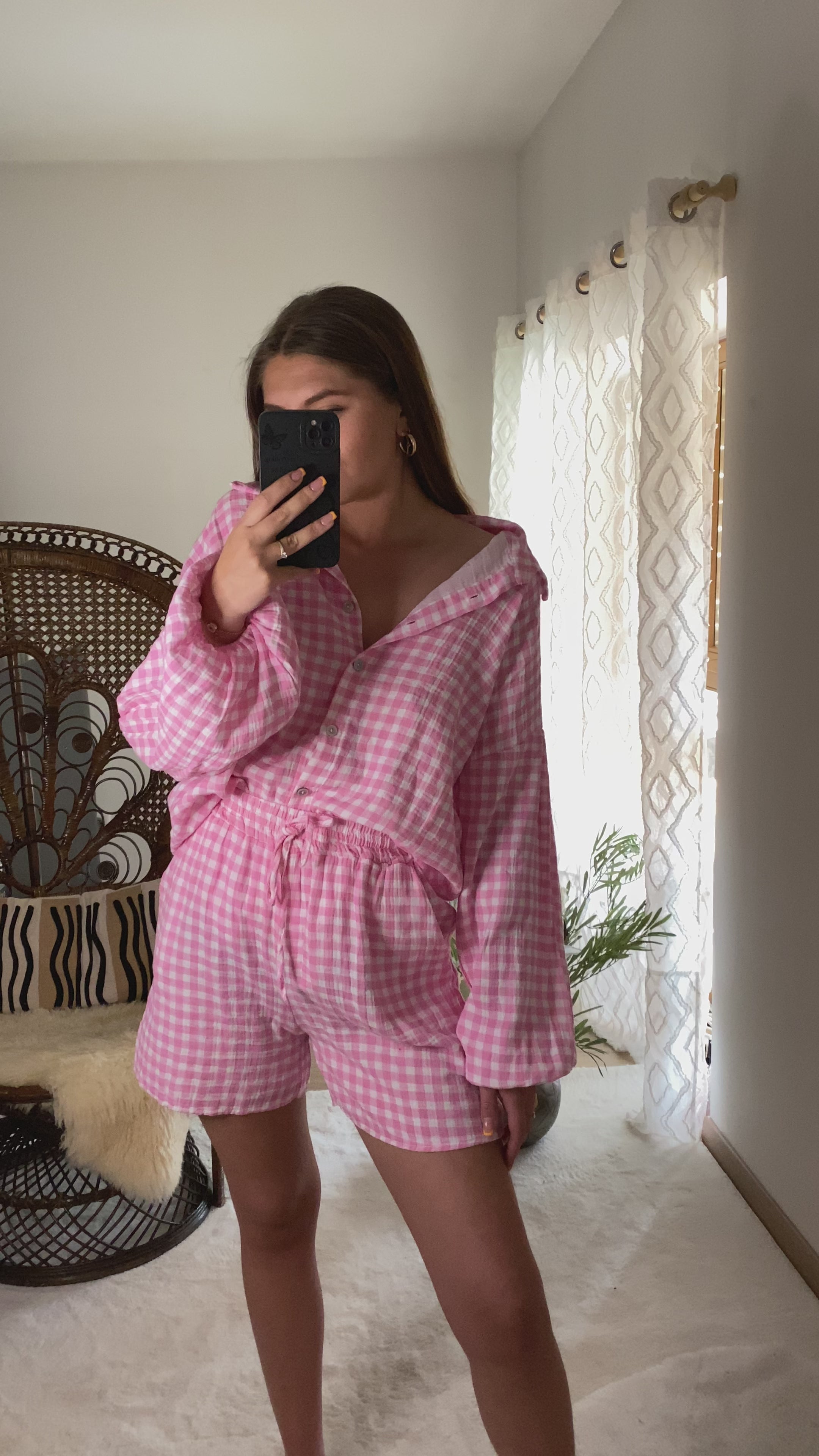 Profitez du confort et de la légèreté du tissu gaze de coton tout en restant élégant. Idéal pour toutes les occasions, cet ensemble vous fera vous sentir à l'aise et à la mode